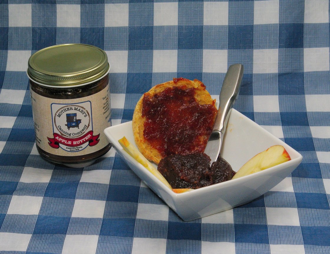 Given the huge success of our gourmet applesauce, it made sense to develop equally delicious apple butter. The thick, tart and sweet result was an instant hit. Our apple butter stands out among the masses. Complimentary varieties of apples are initially cooked in apple cider and retain their tart and fresh flavor after being cooked for a long time. It is one of our favorite products to make. Apples soaked in cider, highlighted with cinnamon and clove cooking slowly all day fill the room with a heavenly scent.